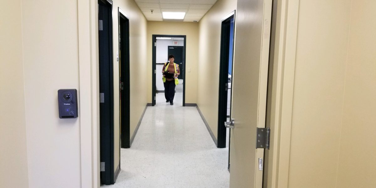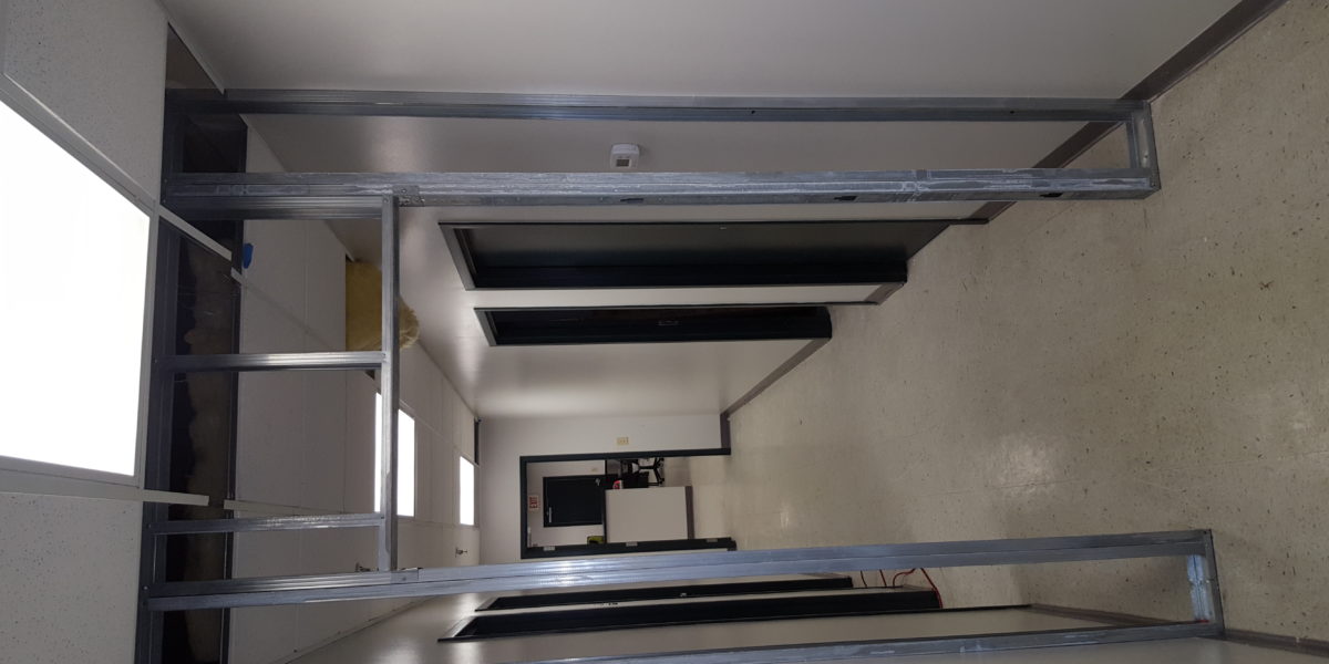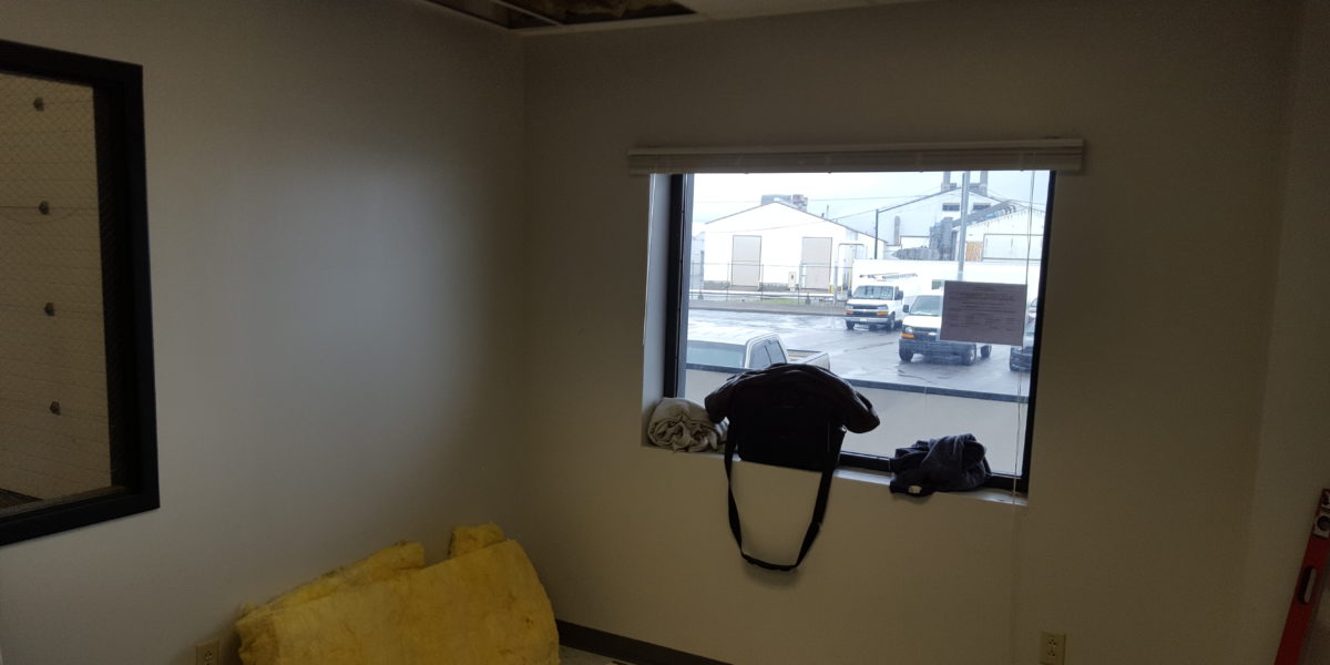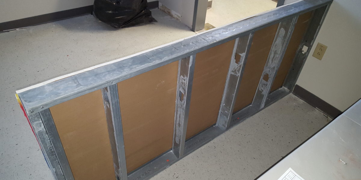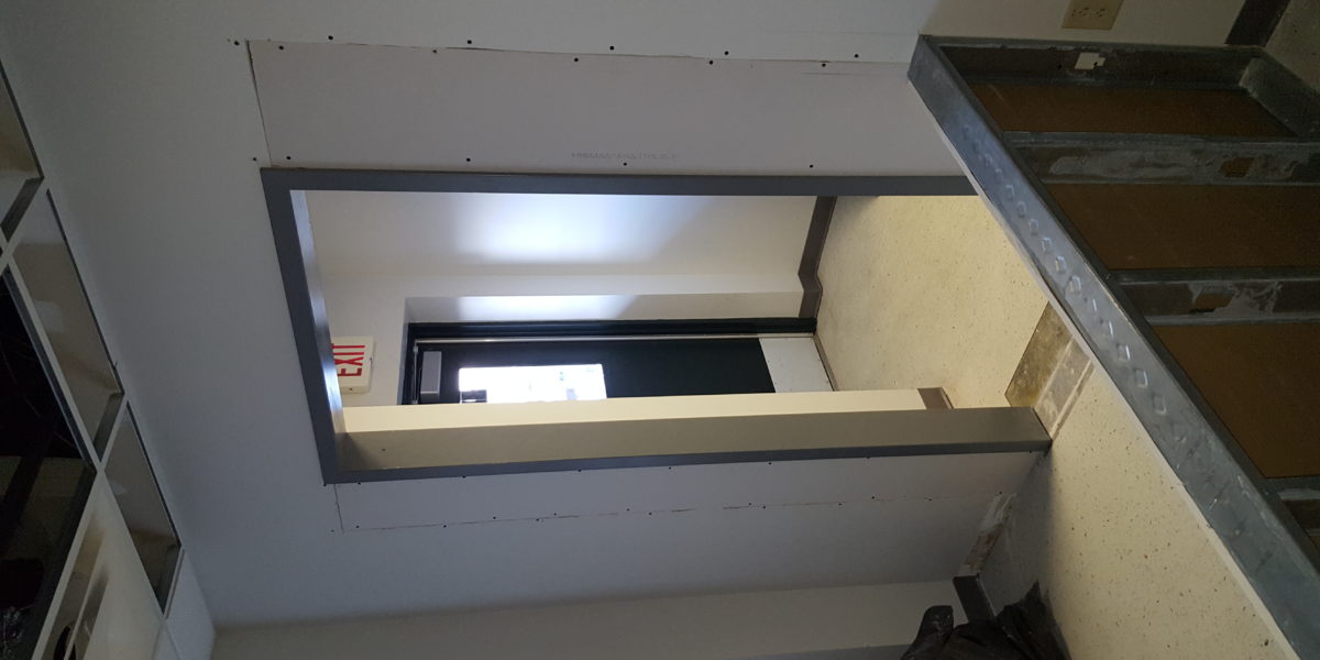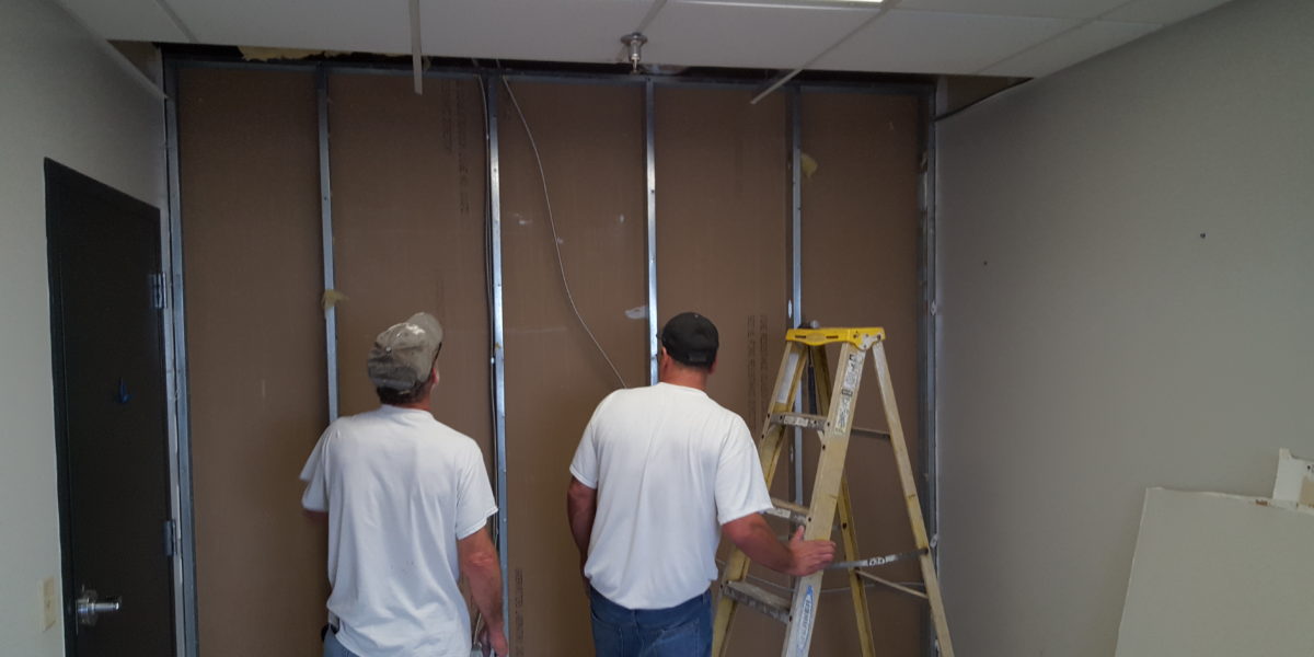 Office area build out for new space at the airport cargo area. Client needed a few walls taken out and a couple of doors installed and a reception area to be added, with electrical and reception desk.